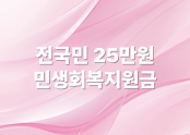 전국민 민생회복지원 25만원민생회복지원금은 최근 경기 침체, 물가 상승, 고금리·고물가로 인한 서민 경제 부담 완화를 위해 정부에서 지급하는대규모 정부 지원 정책입니다. 전체 예산은 13조 2천억 원, 대상은 전국민 5,117만 명으로, 전국민을 대상으로 하되 소득 구간에 따라 차등을 둔게 특징입니다. 1차로 모든 국민에게 1인당 15만원이 지급되고, 2차로 소득 하위 90%에게만 10만원이 추가로 지급됩니다. 여기에 차상위 계층은 총 40만원, 기초생활수급자는 50만원까지 받을 수 있어, 계층별로 최대 4단계로 나눠진 셈입니다. ✅지급대상: 2025년 5월 주민등록 기준 대한민국 전 국민 ✅지급 수단: 지역사랑상품권, 선불카드, 신용 · 체크카드 중 선택 가능 ✅최대 지급 금액 (차등 지급) ➔소득· 자산 상위 10%: 15만원 ➔일반 국민: 25만원 ➔ 차상위계층 및 한부모가정: 40만원 ➔기초생활보장 수급자: 50만원 ➔농어촌 인구소멸지역: 2만원 추가 지급 ⭐이번 민생회복지원금은 1인당 최대 지급 금액이 52만원이며, 4인 가구 기준 최대 208만원까지 지급이 가능합니다 ⭐ ✅언제 받을 수 있나요? 현재(2025년 6월 기준) 정부 및 지자체에서 정책 확정 및 예산 편성 중인 단계입니다. 빠르면 2025년 하반기 국회 추경 통과 후 지급이 가능할 것으로 전망되고 있어요. ✅ 예상 일정은 아래와 같아요: * 구분예상 일정 지원계획 발표 ⇨ 2025년 7월 중 국회 추경 심의 및 통과 ⇨ 2025년 8~9월 지자체별 신청 접수 ⇨ 2025년 9~10월 실제 지급 시작 ⇨ 2025년 10월 이후 ✅신청 방법은? 아직 확정된 부분은 없지만, 과거 지원금 사례를 바탕으로 신청 절차를 미리 예상해보면 다음과 같아요: ✅온라인 신청 - 정부24, 복지로, 각 지자체 홈페이지 등에서 온라인 신청 가능 - 본인 인증 후 지급 계좌 등록 or 지역화폐 발급 - 오프라인 신청 - 주민센터나 시청, 구청 방문 후 신청서 작성 - 고령층, 디지털 취약계층을 위한 창구 운영 예정 - 자동 지급 일부 지자체는 기존 복지 대상자에게 별도 신청 없이 자동 지급 가능성도 있음 신청 기간은 대체로 3주~4주 정도 운영되며, 이후 미신청자는 소멸 처리되므로 꼭 기한 내에 신청해야 합니다! ✅ 지원금 사용처는? 지급 방식에 따라 사용처 제한 여부가 달라질 수 있습니다. ✅지역화폐 또는 지역카드 지급 시: → 거주지 내 전통시장, 소상공인 점포 등에서 사용 가능 → 대형마트, 유흥업소, 온라인 쇼핑몰 사용은 제한 ✅ 현금 지급 시: → 계좌 입금 형태로 지급되며 자유롭게 사용 가능 정책 방향은 지역 경제 활성화를 중점으로 하기에, 현금보다는 지역화폐로 지급될 가능성이 높습니다.