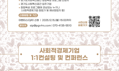 일시: 12월 16일(화) 13:00 ~ 18:00 시청 기간: 12월 10일(수) 00:00 ~ 12월 15일(월) 15:00 신청 방법: 이벤터스 비용: 무료 장소: 경기도 수원시 팔달구 효원로 1, 경기도 사회혁신공간 팔로우