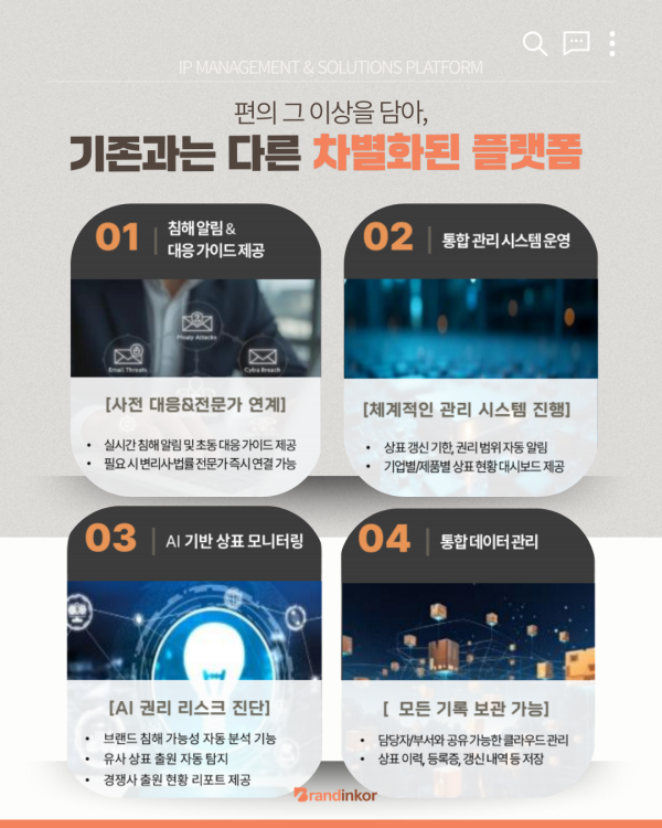 ✔ AI 기반 상표 모니터링으로 경쟁사 출원·리스크 자동 분석