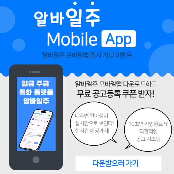 저희 알바일주는 일급/단기 위주의 플랫폼으로써 저렴한 비용으로