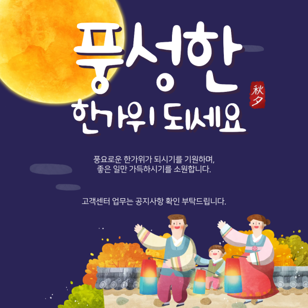 이번 추석,가족과 함께 따뜻하고 풍성한 시간을 보내시길 바라며